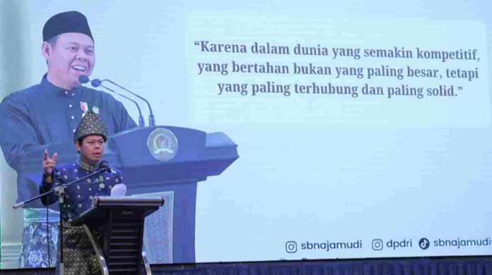 Ketua DPD RI, Sultan Baktiar Najamudin saat di Halal Bi Halal Ikatan Sarjana Melayu Indonesia di Medan, Minggu (12/04).