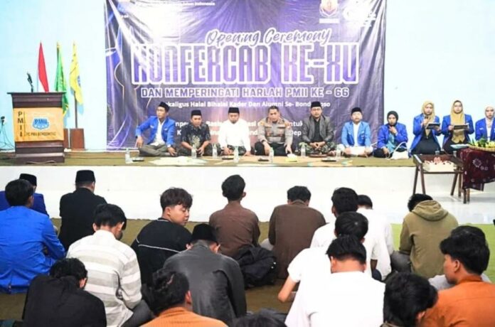 Wakil Bupati Bondowoso, As’ad Yahya Syafi’i, menghadiri Konferensi Cabang (Konfercab) ke-XV Pergerakan Mahasiswa Islam Indonesia (PMII) Cabang Bondowoso yang dirangkaikan dengan peringatan Hari Lahir (Harlah) ke-66 PMII serta halal bihalal kader dan alumni se-Bondowoso, Sabtu (25/4), malam, di Graha PMII setempat.