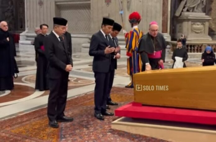 Presiden RI Ke-7 Joko Widodo saat memberi penghormatan terakhir Paus Fransiskus di Roma. (ist).