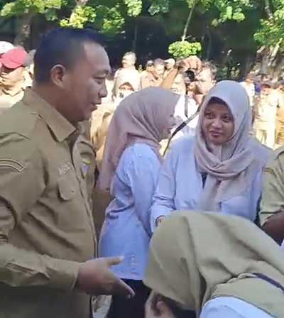 Bupati Rio bersama Wabup Ulfi serta Sekda Wawan Setiawan kompak mengadakan inspeksi mendadak (sidak) pada hari pertama masuk kerja ASN, Selasa (8/4).