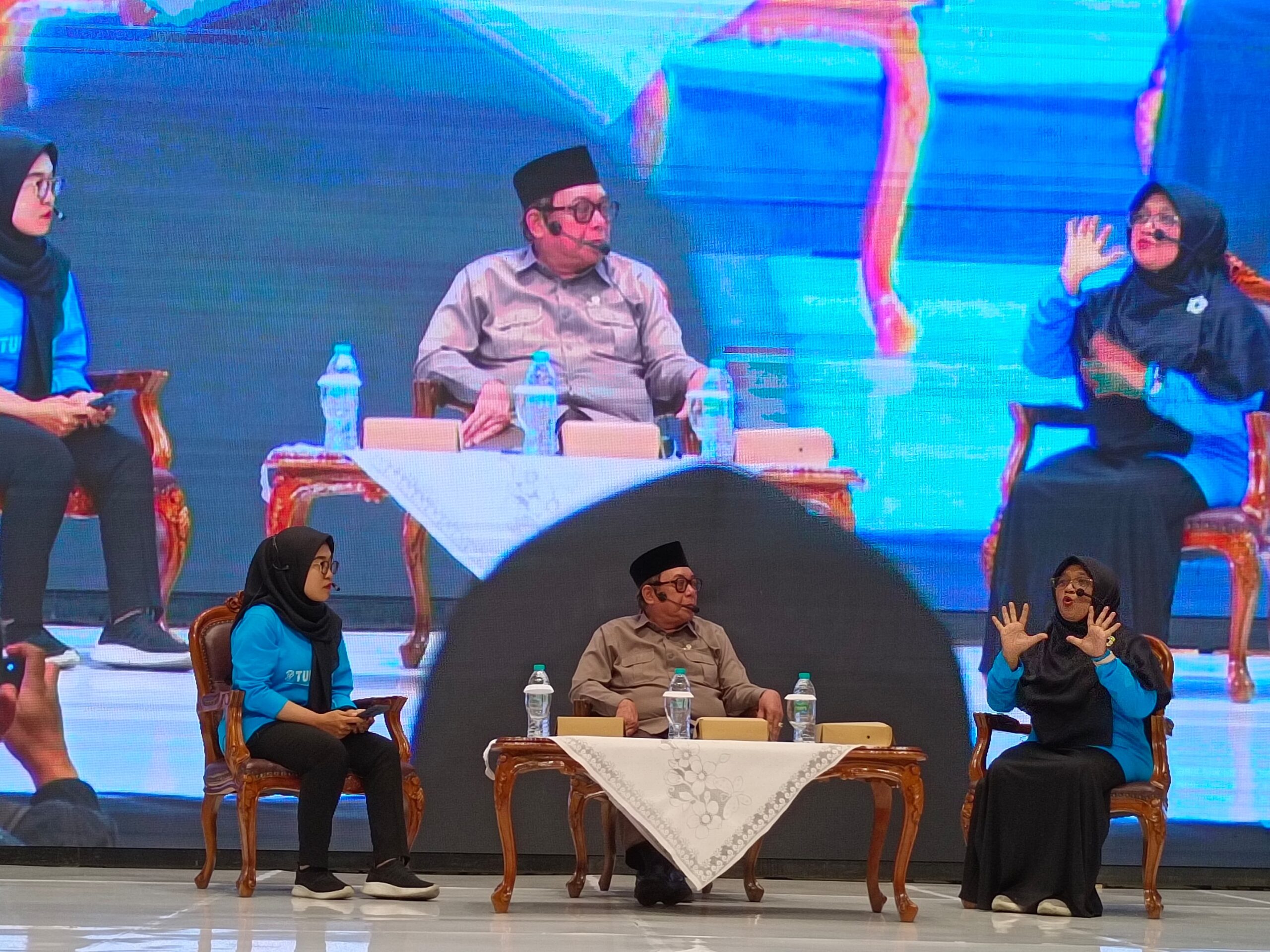 Di hari terakhir penyelenggaraan Jatim Fest di Grand City Conventional Hall, Kota Surabaya, Minggu sore (6/10). Dinas Sosial Provinsi Jawa Timur (Dinsos Prov Jatim) menggelar Talkshow dengan tema Tuli Berkarya, Tuli Mendunia.