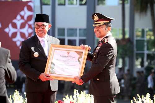 Penghargaan ini diserahkan langsung Wali Kota Batu, Nurochman kepada Kapolres Batu, AKBP Andi Yudha Pranata pada peringatan Hari Lahir Pancasila yang digelar di halaman Balai Kota Among Tani, Senin (2/6).