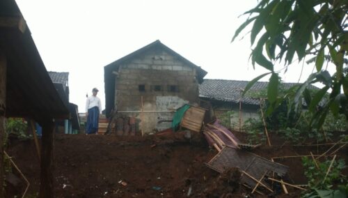 Tanah longsor di Desa Srigading, Kec Lawang, Kabupaten Malang yang menyebabkan bangunan rumah warga rusak