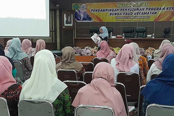 Pokja Bunda PAUD Kabupaten Sidoarjo, kemarin, dalam acara workshop pendampingan penyusunan program kerja tahun 2026 mendatang, juga menghadirkan Didik, salah satu pembicara dari Dinas Pendidikan Kabupaten Sidoarjo.