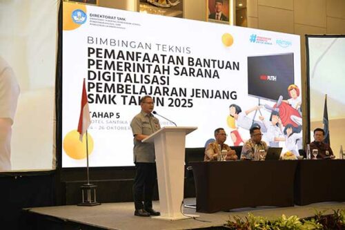 Dinas Pendidikan (Dindik) Jatim perkuat digitalisasi pembelajaran yang menyasar jenjang SMK. Langkah ini diwujudkan dengan menggelar Bimbingan Teknis (Bimtek) Pemanfaatan Bantuan Pemerintah Sarana Digitalisasi Pembelajaran Jenjang SMK Tahun 2025 Tahap 5 yang digelar pada 24-26 September ini.
