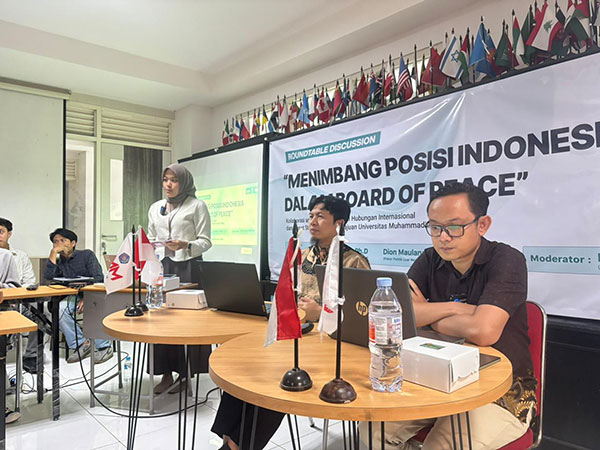 Langkah Pemerintah Indonesia bergabung dalam Board of Peace (BoP), sebuah inisiatif perdamaian global gagasan Amerika Serikat di bawah Presiden Donald Trump, menuai sorotan tajam dari kalangan akademisi. Universitas Muhammadiyah Malang (UMM) melalui Prodi Hubungan Internasional (HI) dan Pusat Studi Islam Berkemajuan (PSIB) menggelar Roundtable Discussion untuk membedah implikasi politik dan ideologis dari keterlibatan tersebut.