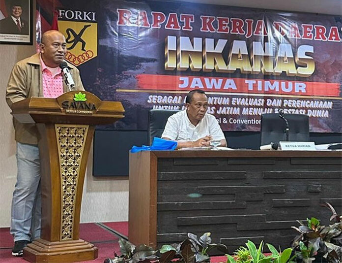 Dukungan tersebut disampaikan dalam Rapat Kerja Daerah (Rakerda) Inkanas se-Jatim yang digelar Minggu (8/3) di Suvanah, Malang. Dalam forum tersebut, para pengurus cabang sepakat mendorong Sekretaris Umum Pengda Inkanas Jatim itu untuk maju dalam pemilihan Ketua Umum FORKI Jatim mendatang.