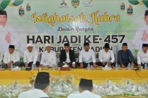 “Sudah selayaknya kita semua bukan hanya melakukan ikhtiar lahir, namun juga harus melakukan ikhtiar batin, salah satunya melalui istighosah kali ini. Dalam istighosah ini, marilah kita mengkhusyukkan diri dalam doa-doa. Semoga ikhtiar kita dalam memajukan Kabupaten Madiun mendapat ridho dari Allah Subhanahu wa Ta’ala,” tuturnya.