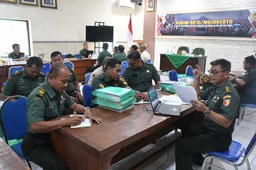 Tim Audit Itdam V/ Brawijaya dipimpin Kol Cba Afid Handoko SSos MSi melakukan audit di Kodim 0815/Mojokerto, untuk Kinerja Triwulan IV Tahun 2025, di Makodim Mojokerto, Jalan Majapahit Nomor 1, Kota Mojokerto, Selasa (11/11) kemarin