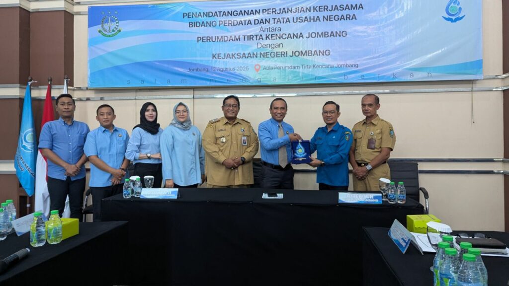 Perkuat penerapan Good Corporate Governance (GCG) guna memastikan operasional perusahaan berjalan sesuai koridor hukum, Perusahaan Umum Daerah Air Minum (Perumdam) Tirta Kencana Jombang mengadakan penandatanganan perjanjian kerjasama atau MoU dengan Kejaksaan Negeri (Kejari) Jombang di bidang perdata dan tata usaha negara yang bertempat di Aula Perumdam Tirta Kencana Jombang, Selasa (12/08).
