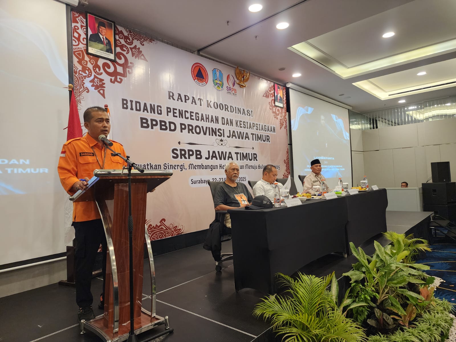 Kalaksa BPBD Jawa Timur Gatot Soebroto membuka Rakor SRPB Jatim pada Sabtu-Minggu, 22-23 Februari 2025.
