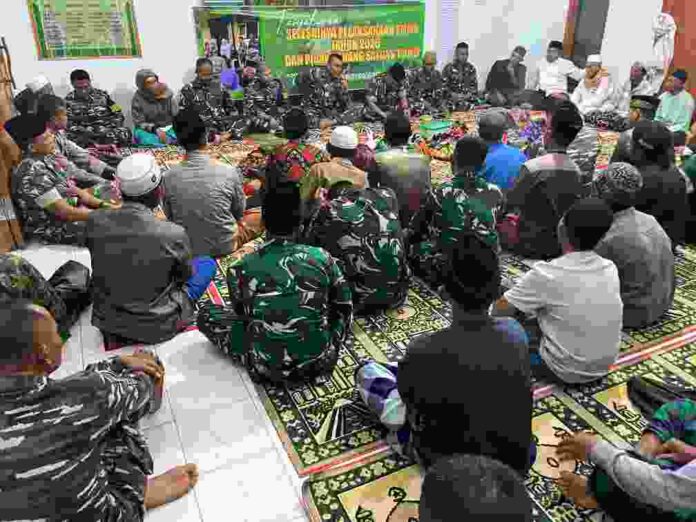 Jelang berakhirnya program TMMD Ke-127 Kodim 0823/Situbondo, suasana kebersamaan terasa di Masjid At-Taqwa, Dusun Plampang, Desa Alas Tengah, Kecamatan Sumbermalang, Kabupaten Situbondo, kemarin malam. Usai melaksanakan salat tarawih, personel Satgas TMMD bersama masyarakat menggelar tasyakuran sekaligus acara perpisahan.