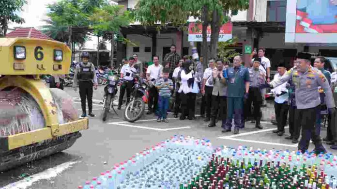 Kapolres Jombang memaparkan, total barang bukti yang dihancurkan mencapai lebih dari 12 ribu botol.