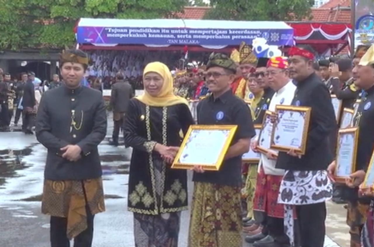 Penghargaan bergengsi tersebut diserahkan Gubernur KIP, dengan didampingi Wagub Emil E. Dardak, saat puncak peringatan Hari Pendidikan Nasional (Hardiknas) tahun 2025, yang diacarakan di Kantor Gubernur Jatim, kemarin.