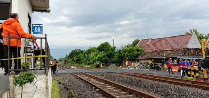 Lokasi di perlintasan JPL 08 dekat Stasiun Magetan, Jawa Timur, yang melibatkan KA 170 Malioboro Ekspres dan sejumlah kendaraan pada Senin (19/5/2025).