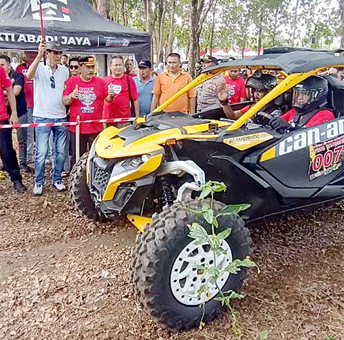 Sementara itu, Kapolda Jatim turut melakukan ekshibisi menyusuri sirkuit Bukit Cinta dengan kendaraan off-road build up di medan kelas untuk speed, sayangnya belum sempat capai garis finish, mobil offroad build up Kapolda alami patah salah satu shoknya patah, beruntung beliau tidak mengalami cidera. “Gila, terbang tadi, sayang mendaratnya ndak mulus”, ujar beliau.