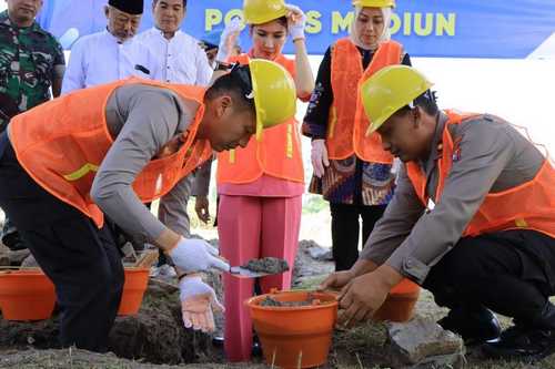Kapolres Madiun, AKBP Kemas Indra Natanegara SH SIK MSi didampingi Ketua Bhayangkari Cabang Madiun Ny Nossy memimpin Peletakan Batu Pertama pembangunan Satuan Pelayanan Pemenuhan Gizi (SPPG) ke-2 Polres Madiun, yang berlokasi di Desa Purworejo, Kecamatan Pilangkenceng, Kabupaten Madiun, Rabu (22/10) kemarin.