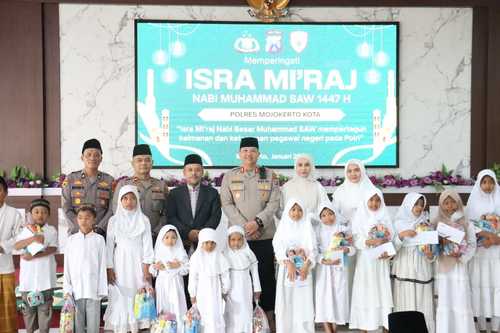 ”Momentum Isra Mi’raj ini hendaknya menjadi sarana introspeksi diri bagi seluruh personel Polres Mojokerto Kota untuk meningkatkan kualitas ibadah, integritas, serta tanggung jawab dalam pengabdian kepada masyarakat. Dengan keimanan dan ketaqwaan yang kuat, kami berharap setiap anggota Polri dapat menjalankan tugas secara profesional, humanis, dan berintegritas,” ujarnya.