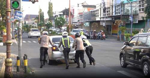 Melihat hal itu, AKBP Herdiawan bersama anggota tanpa ragu langsung menghentikan kendaraan dinasnya dan bergegas memberikan bantuan. Mereka bahu-membahu mendorong mobil tersebut ke tepi jalan hingga akhirnya dapat kembali dinyalakan.