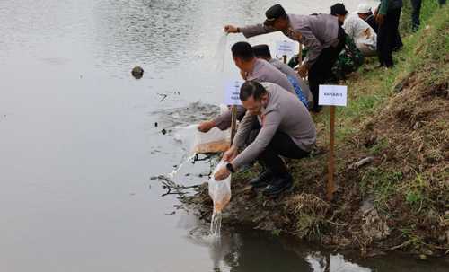 ”Ikan tombro yang ditabur jenis lokal, tidak invasif, tidak predator. Jadi memang ikan lokal yang insyaallah baik bagi ekosistem sungai,” ujar Kapolres Taat Resdi, Sabtu (18/10).