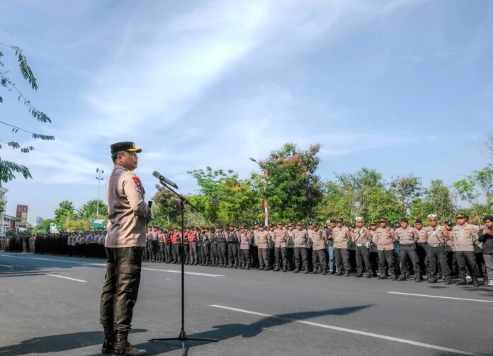 Kapolrestabes Surabaya, Kombes Pol Luthfi Sulistiawan memimpin apel pengamanan aksi unras di Kantor Gubernur Jatim, Kamis (28/8).