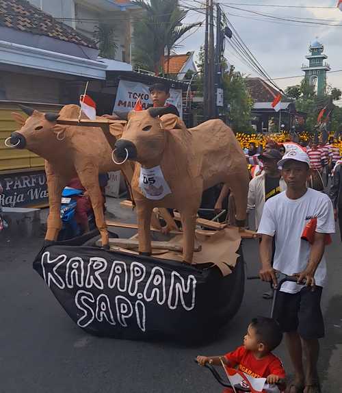 Salah satu penampilan yang paling menarik perhatian adalah rombongan warga RT 05/RW 03 yang menampilkan karnaval bertemakan kebudayaan Madura. Mereka berjalan sambil membawa spanduk dan kereta berbentuk karapan sapi yang ditunggangi oleh satu orang joki anak-anak.