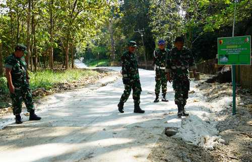 Kasdim 0813 Bojonegoro Mayor Inf Bambang Riyanto, yang didampingi oleh Danramil 0813-24/Temayang Kapten Cku Parjan, dan Babinsa Desa Soko Serda Yoeda Prabowo, memantau secara langsung proses pengerjaan pembangunan jalan beton Desa Soko Kecamatan Temayang menuju Desa Pajeng Kecamatan Gondang Kabupaten Bojonegoro.