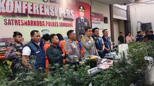 ”Suaminya residivis masalah Ganja saudara P, warga Bantul, Jogjakarta, yang mengontrak rumah di Kabupaten Jombang, dan istrinya saudara I, warga Sidoarjo, yang mengontrak satu rumah dengan tersangka P,” beber Kapolres Jombang.