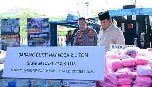 Pemusnahan Barang bukti (BB) narkoba seberat 214,84 ton narkoba, ditaksir senilai Rp 29,37 trilyun. Pemusnahan dipimpin Presiden Prabowo Subianto, diikuti Ketua MPR, dan Ketua DPR-RI. Menjadi pemusnahan BB narkoba salahsatu yang terbesar sepanjang sejarah. Namun masih banyak lagi BB narkoba, terutama sabu, hasil tangkapan tahun 2025, belum dimusnahkan. Maka kewaspadaan harus ditingkatkan, terutama barang bukti yang masih menunggu kasusnya inkrach.