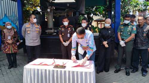 Selain Wali Kota Malang, Wahyu Hidayat, turut hadir Kapolresta Malang Kota, Kombes Pol Nanang Haryono SH SIK MSi, Dandim 0833/Kota Malang, Letkol Inf Moh Alharidz Unus, SSos MIP, Ketua DPRD Kota Malang Amithya Ratnanggani Siraduhita SS, Kepala BNN Kota Malang AKBP Trisal Pianggara SH MH, Kepala Bea Cukai Malang Johan Pandores , Camat Blimbing I Ketut Widi Eika Wirawan SSos MM dan pejabat penting lainnya. [mut.fen]