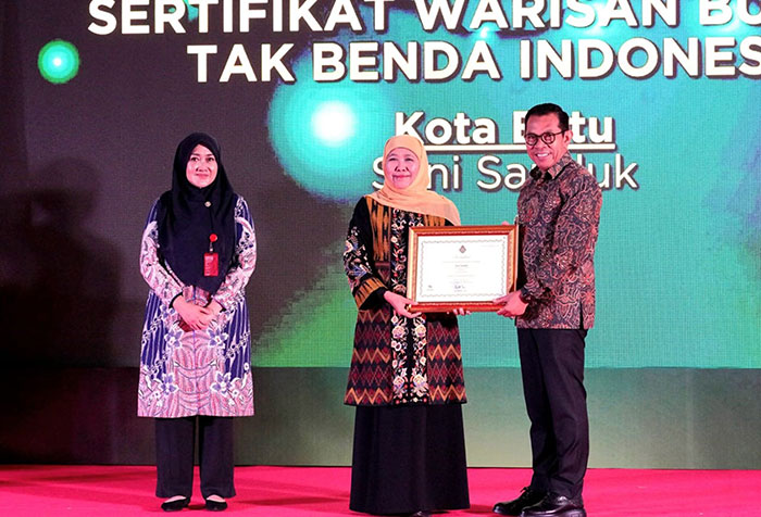 Pengakuan resmi Seni Sanduk sebagai WBTb Indonesia ini ditandai dengan diserahkannya sertifikat dari Kementerian Kebudayaan (Kemenbud) RI kepada Wali Kota Batu, Nurochman. “Sertifikat ini menjadi bentuk pengakuan resmi Negara terhadap Seni Sanduk sebagai salah satu kekayaan budaya yang tumbuh, hidup, dan berkembang di tengah masyarakat Kota Batu,” ujar Cak Nur, panggilan akrab Nurochman, Senin (23/2).