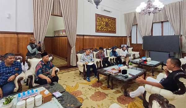 Bupati Situbondo Yusuf Rio Wahyu Prayogo menerima kunjungan Direktur Pengurangan Sampah dan Pengembangan Ekonomi Sirkular, Kementerian Lingkungan Hidup (KLH) Agus Rusly di Pendapa Rakyat Situbondo, Sabtu petang (6/9).