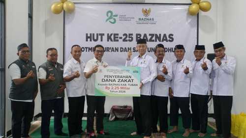 PT Semen Indonesia (Persero) Tbk (SIG) Pabrik Tuban merupakan perusahaan penyumbang dana zakat terbesar yang diterima Badan Amil Zakat Nasional (Baznas) Kabupaten Tuban. Hal tersebut diungkapkan Ketua Baznas Kabupaten Tuban Ir. Agus Suryanto, MM., M.Agr. pada penyerahan dana zakat dari Unit Pengumpul Zakat (UPZ) SIG Pabrik Tuban yang diserahkan oleh GM of Mining & WHRPG SIG Pabrik Tuban, Khosyiin Mashum beserta pengurus UPZ di Kantor Baznas Tuban, Senin (19/1/2026).