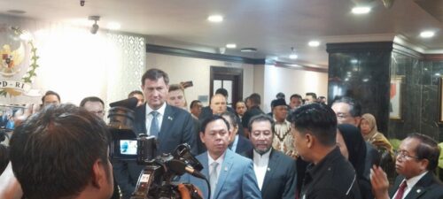 Wakil Ketua DPD Yorrys Raweyai dan sejumlah anggota DPD RI saat menerima kunjungan kehormatan rombongan Menteri Luar Negeri Belarus Maxim Ryzhenkov dan jajarannya tersebut.