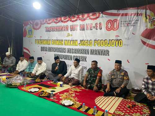 Setelah sekian lama pengerjaan pembangunannya selesai, Pemerintah Desa Betoyoguci, Kecamatan Manyar, Kabupaten Gresik, meresmikan Joglo Podo Joyo.