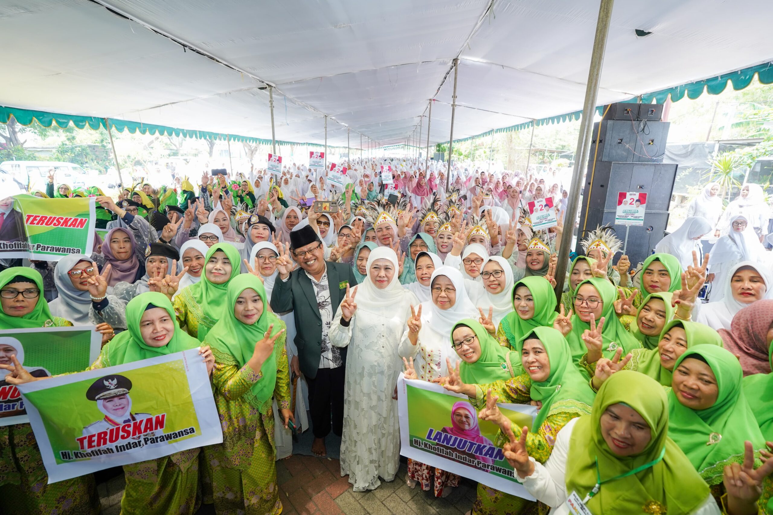 Calon Gubernur Jawa Timur Khofifah Indar Parawansa hadir dalam peringatan Hari Santri Nasional yang digelar PC Muslimat NU Kabupaten Sidoarjo, di kawasan Jemundo Puspa Agro, Rabu (23/10/2024).