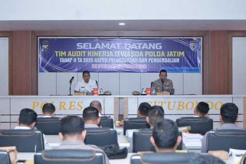 Jajaran Polres Situbondo menerima Tim Audit Kinerja Itwasda Polda Jatim dalam rangka Wasrik (pengawasan dan pemeriksaan) Tahap II Tahun Anggaran 2025 Aspek Pelaksanaan dan Pengendalian di Aula Tantya Sudirajati, sejak Selasa (7/10).