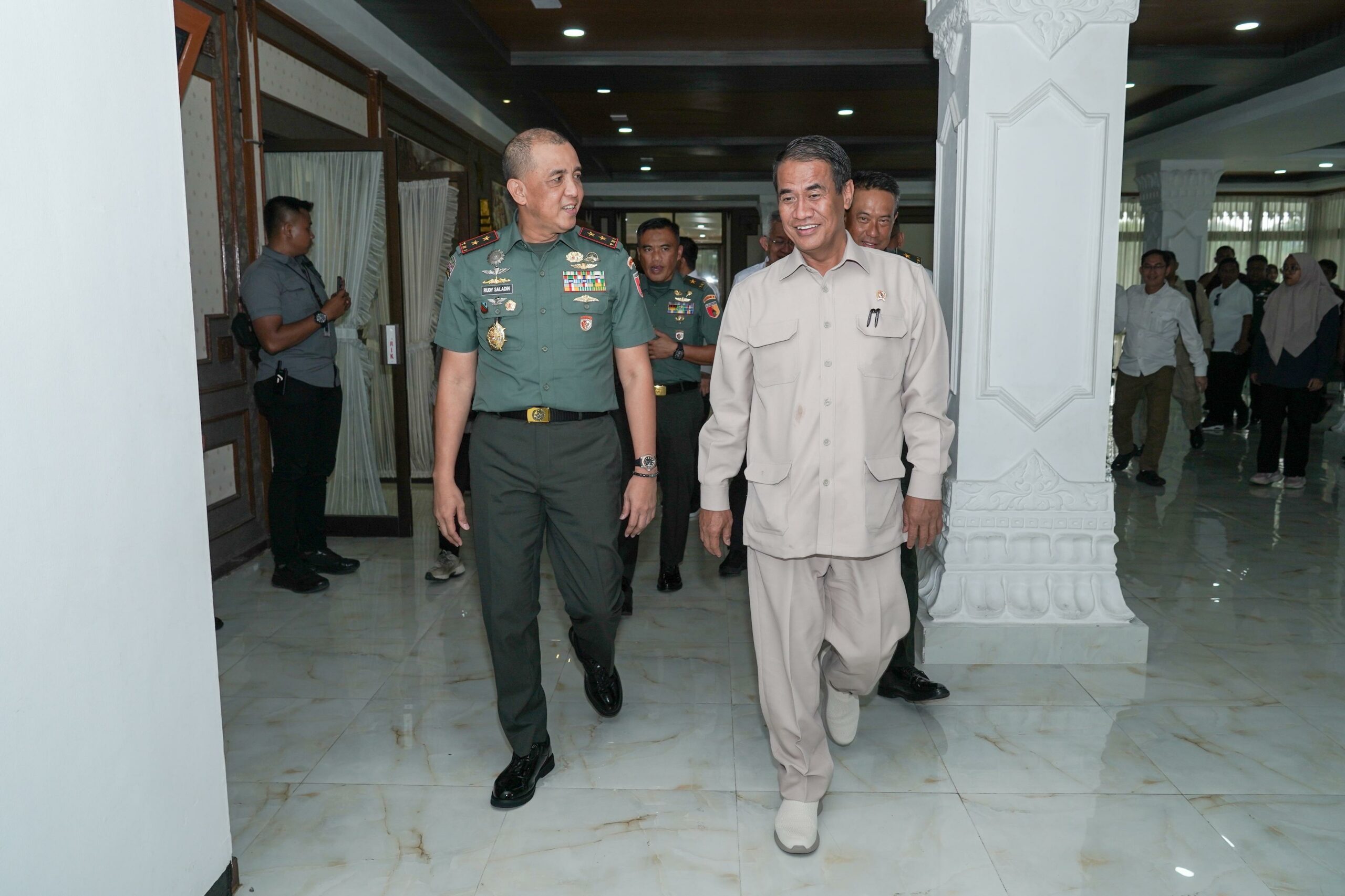 Pangdam V/Brawijaya, Mayjen TNI Rudy Salading menerima kunjungan Menteri Pertanian RI, Andi Amran Sulaiman, Selasa (7/1) sore di Balai Prajurit Kodam V/Brawijaya.