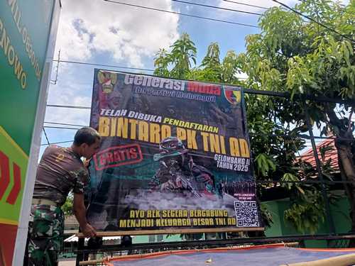 Kodim 0830/Surabaya melalui Koramil jajaran gencar mensosialisasikan pendaftaran penerimaan TNI Bintara PK dan Tamtama PK Tahun Anggaran 2025, Kamis (18/9). Sosialisasi ini dilakukan dengan pemasangan banner rekrutmen TNI.