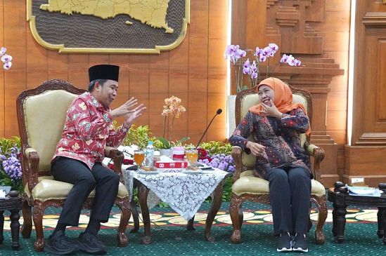 Bupati Jember Muhammad Fawait bersilaturahmi dengan Gubernur Jawa Timur Khofifah Indar Parawansa di Gedung Negara Grahadi, Selasa (26/8/2025). Pertemuan tersebut membahas persiapan Musabaqah Tilawatil Quran (MTQ) Jawa Timur 2025 yang akan digelar di Kabupaten Jember pada September mendatang.