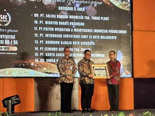 Penghargaan diserahkan Kepala Dinas Tenaga Kerja dan Transmigrasi (Disnakertrans) Provinsi Jawa Timur, Sigit Priyanto, kepada Erwan Yulianto, Senior Chemist and Environmental Engineer sekaligus Koordinator 5R PT POMI Paiton Energi. Penyerahan dilakukan di Hotel Mercure Surabaya, Kamis (6/11), disaksikan oleh Kepala Disnaker Kabupaten Probolinggo, Saniwar.