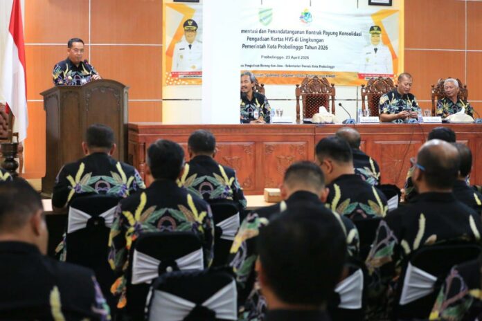 Penandatanganan kontrak dilakukan di ruang Puri Manggala Bhakti Kantor Wali Kota Probolinggo, Kamis (23/4), sebagai tindak lanjut rekomendasi KPK dan LKPP dalam mendorong efisiensi belanja daerah.