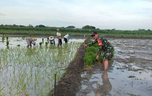 Koramil 0815/06 Kemlagi Intensifkan Pendampingan Tanam Padi