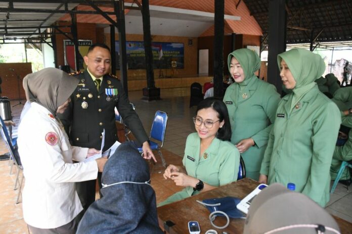 Pemeriksaan kesehatan berkala bagi personel militer, PNS, dan anggota Persit di Pendapa Paramita Cikaran, Jalan Gajah Mada No. 4, Kota Mojokerto, Jumat (03/10/2025).