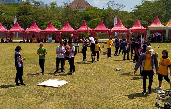Plt Ketua Kormi Jatim, Prof. Dr. Drs. Andun Sudijandoko, M.Kes. AIFO mengaku senang dengan antusias pengunjung untuk mencoba permainan tradisional itu.