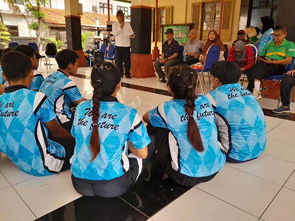 Wakil Ketua KORMI Sidoarjo, Untung, memberi semangat kepada atlet KORMI Sidoarjo agar bertanding dengan sungguh-sungguh, karena membawa nama baik daerah.