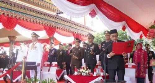 Upacara Bendera dipimpin Wali Kota Madiun, Dr Maidi selaku inspektur upacara dan Ketua DPRD Kota Madiun, Drs H Armaya, selaku pembaca teks proklamasi. Upacara dihadiri Forkopimda Kota Madiun serta seluruh pejabat OPD Kota Madiun, dan ratusan undangan lainnya.