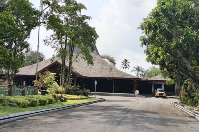 Wartawan hanya bisa mengamati dari luar pintu gerbang yang ditutup tim keamanan pendopo.