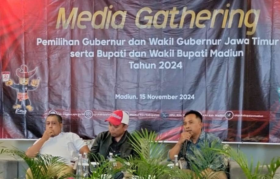 Komisi Pemilihan Umum (KPU) Kabupaten Madiun menggelar Media Gathering Pemilihan Gubernur-Wakil Gubernur Jawa Timur serta Bupati-Wakil Bupati Madiun, Jumat 15 November 2024.