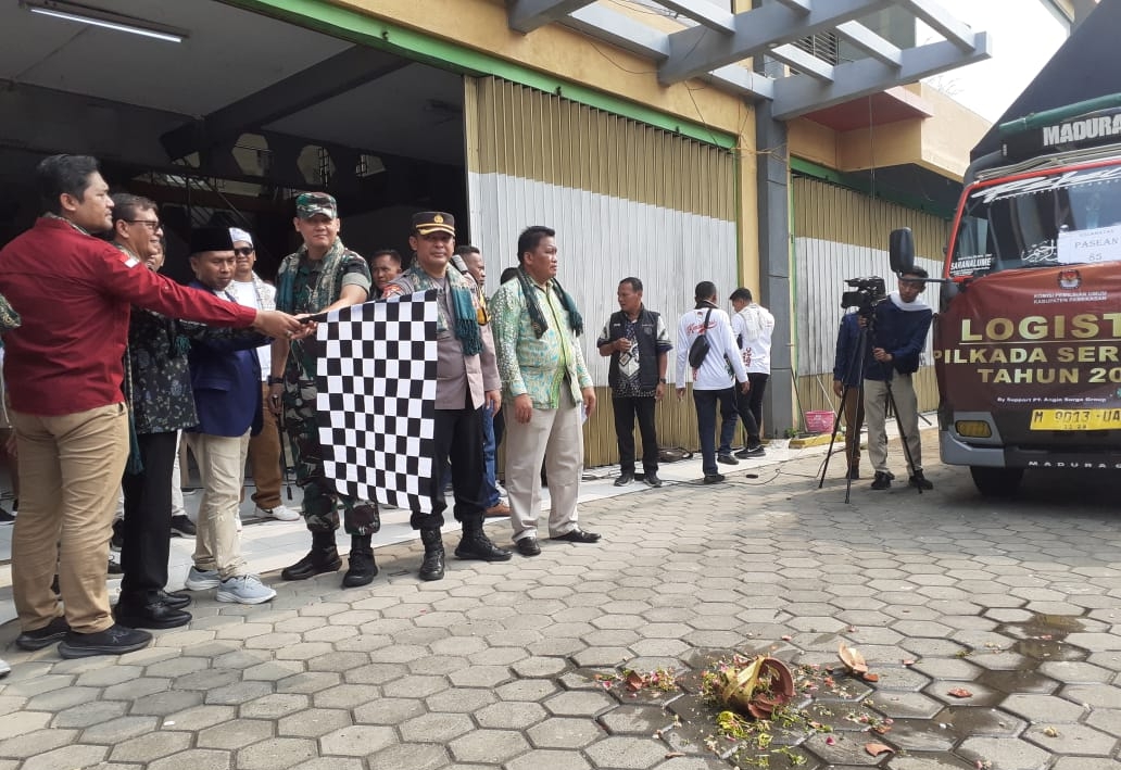 Pj Bupati Pamekasan Masrukin, Dandim 0826 Pamekasan, Letkol Inf Herik Prasetiawan, Kabag Ops Polres Pamekasan, Kompol Hery Setyo Susanto, Ketua KPU Pamekasan dan Ketua Bawaslu Pamekasan, berangkatkan logistik Pilkada Serentak 2024.